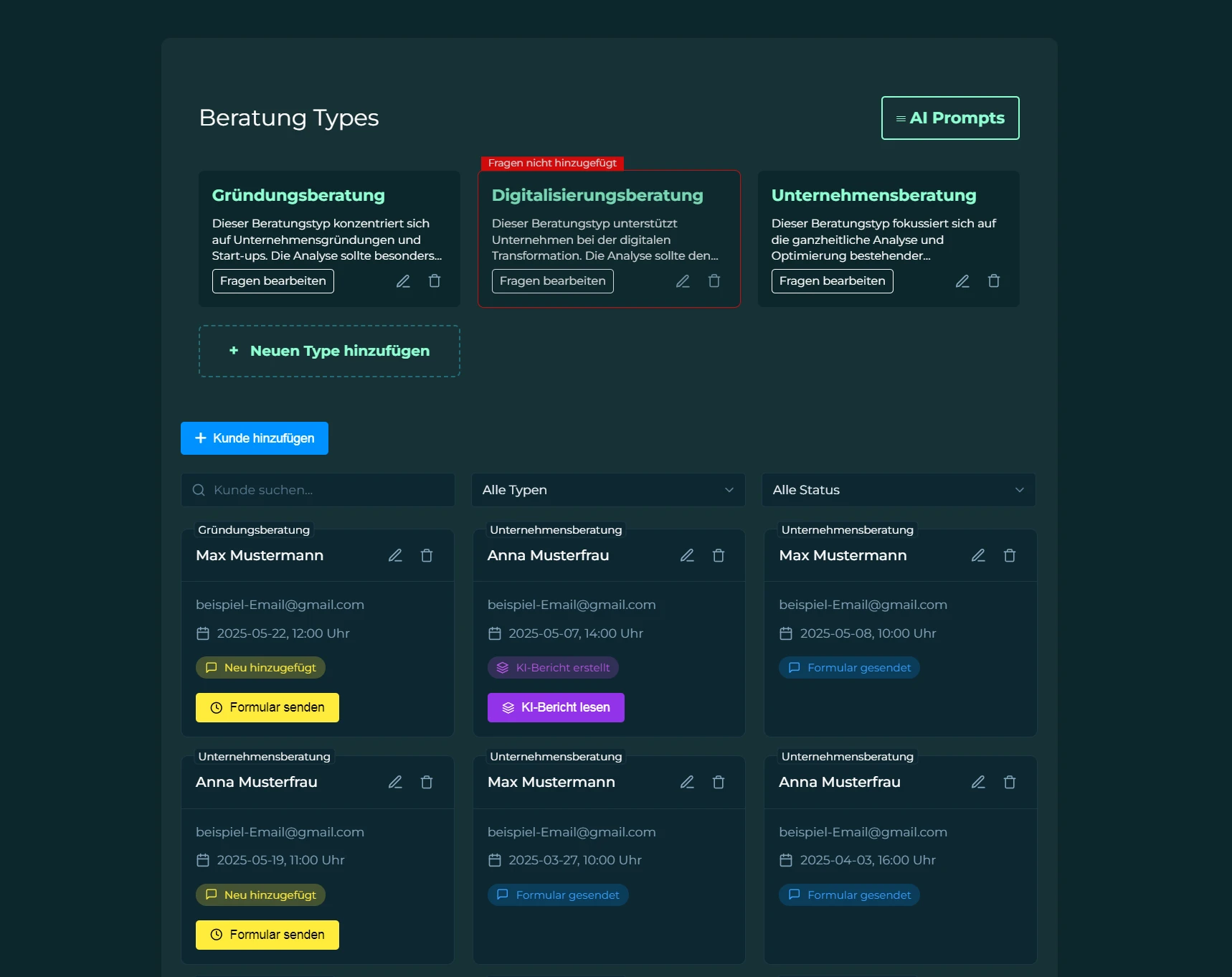 Sparen Sie wertvolle Zeit und liefern Sie bessere Ergebnisse mit unserem KI-gestützten Beratungssystem. Automatisierte Kundenanalyse und intelligente Vorbereitung für Ihren nächsten Termin.